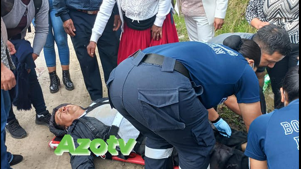 Ambulancia del Cuerpo de Bomberos de Biblián socorren a los heridos.